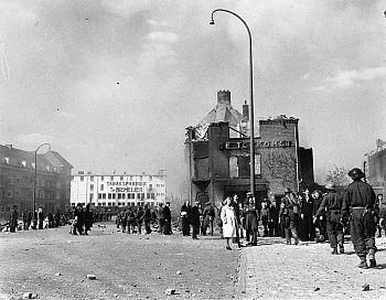 Tijdens de bevrijding van Groningen, medio april 1945, gingen zowel deze winkel als het omringende blok door brand verloren. Op de plek verrees in 1947/1948 een nieuw blok, wederom naar een ontwerp van Bonne Kazemier. Diens plattegrond van de winkel bleef in het bouwdossier bewaard:
