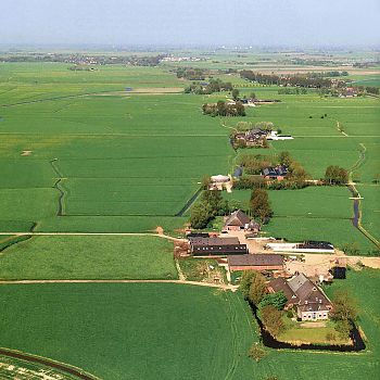 Op de voorgrond de Ooster-Heddemaheerd. Linksonder zien we nog net een stukje van een watergang. Dat is de benedenloop van de Katerhals, waarlangs het laagland van Niekerk en Faan afwaterde.