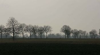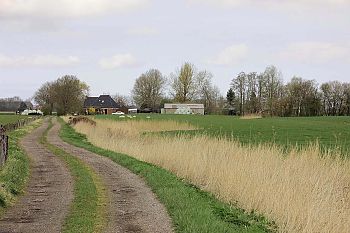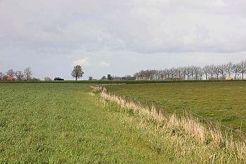 De bomen rechts op de foto staan langs de weg naar Balmahuizen.