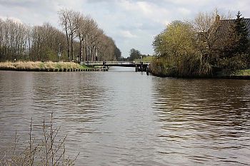 Het Stillediep was het nieuwe uiteinde van de Oost-Vredewoldertocht. Het terrein achter de boom rechts is het bij Uildersma behorende perceel, waar het slot Oxwerderzijl heeft gestaan.