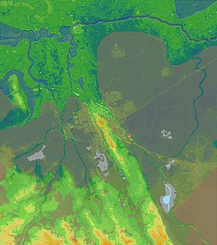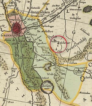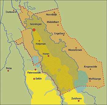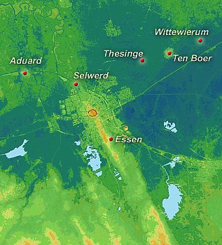 - in het uiterste noorden ligt het kleine landje Selwerd; het is hier aangegeven met een wat onbestemde donkere kleur;