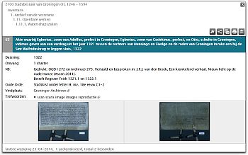 We zullen niet, zoals in het geval van de akte van 1285, opnieuw gaan kijken naar de betreffende pagina’s van het Oorkondenboek en de website van Cartago, maar wel een blik werpen op de beschrijving in de inventaris van het stadsarchief van Groningen, die men kan vinden op Archieven.nl.
