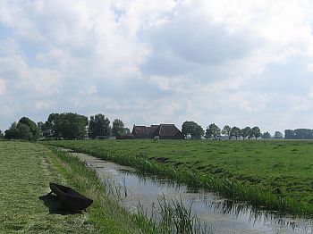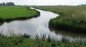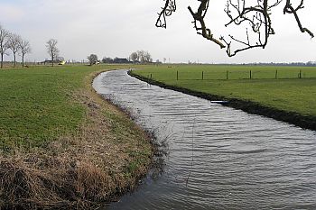 Het is voor ons moeilijk voorstelbaar dat de bescheiden watergang op deze foto het restant is van de route waarlangs zeeschepen tot 1629 van en naar de stad Groningen voeren.