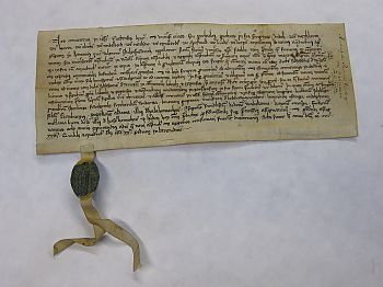 NB De notities achterop de oorkonde luiden: ‘de aqueductu’ (letterlijk: ‘over de waterleiding’) en ‘de novis aqueductibus prope grangiam Schilgheham positis et conservandis’ (letterlijk: ‘over de nieuwe waterleidingen die bij het voorwerk Schilligeham geïnstalleerd zijn en beheerd moeten worden’). Het is niet duidelijk waarom de ene notitie het enkelvoud hanteert en de andere het meervoud. De tekst zelf maakt melding van de ‘novos aqueductus apud grangiam in Hammis’ (‘nieuwe waterleidingen bij het voorwerk in de Hammen’).