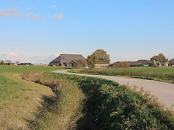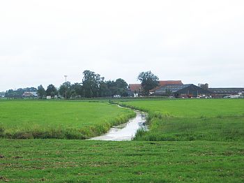 Op de foto zien we de zuidwest-noordoost lopende sloot zoals die nu enkele meters ten oosten van boerderij Kolde Ovent (rechts) tegen de Reitdiepsdijk doodloopt. Zichtbaar is dat de sloot niet helemaal doorloopt. Aan de westzijde van de E.H. Woltersweg ontbreekt een stukje. Op de achtergrond is boerderij ‘De Vennen’nog net zichtbaar.