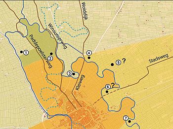Zou dit een overblijfsel kunnen zijn van een oude versterking die samenhangt met de langgerekte, zuidwest-noordoost lopende laagte die we hier onder de loep nemen? Of hebben we hier te maken met een van de vijf kleine wachtposten die het stadsbestuur van Groningen in mei 1591 op verschillende plaatsen ten noorden van de stad heeft laten bouwen om te verhinderen dat Staatse benden daar vee weghaalden? Volgens een post in de stadsrekening van 1591 had een schans aan de Paddepoelsterweg een omtrek van 21 roeden, omgerekend een kleine 86 meter.3 Die maat lijkt overeen te komen met de omtrek van de hoogte binnen de slootsporen. De plek is weloverwogen gekozen: vanuit het schansje was het mogelijk niet alleen het verkeer over de Paddepoelsterweg in de gaten te houden, maar ook een oogje te houden op vaartuigen die het Reitdiep bevoeren.