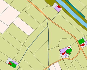 - Het zuidelijke stuk (bij boerderij De Vennen, op het plaatje linksonder) ontbreekt nog niet zo lang. Die sloot is nog te zien op de oude kadasterkaart. Zelfs op de topografische kaart van dertig jaar geleden staat hij nog. Deze watergang heeft zijn functie verloren en is gedempt om een groter perceel te verkrijgen.