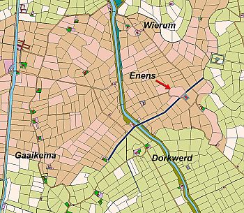 Op de kadasterkaart zagen we (ongeveer) in het verlengde van de zwetsloot tussen Wierum en Dorkwerd een sloot die ten noorden van het Reitdiep tussen de wierden van Enens lijkt door te lopen en in de gecombineerde benedenloop van A en Hunze uitkomt. Kan het zijn dat de sloot bij Dorkwerd een onderdeel is van een oude verbinding tussen de Hunsinge en de Hunze?