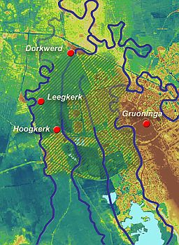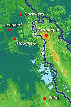 De op het kaartje zichtbare hoogteverschillen zijn die van nu. Waarschijnlijk was de Paddepoel nog niet zo hoog opgeslibd. Opmerkelijk is ook de relatieve hoogte van de streek ten westen van Hoogkerk. Mogelijk is hier sprake van inversie: een voormalige laagte die zich later juist als een rug manifesteert. De pleistocene ondergrond vertoont hier een vanuit het zuidwesten komende laagte, die als een smeltwaterdal moet worden geïnterpreteerd. We zullen nog de gelegenheid krijgen om dit verschijnsel nader te bekijken.