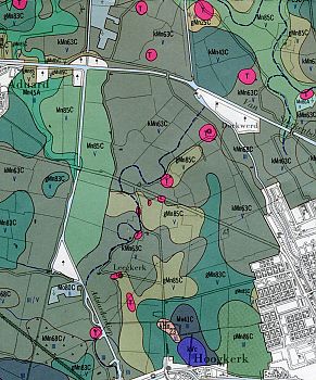 Op bovenstaande uitsnede uit de bodemkaart van Stichting voor Bodemkartering (Stiboka) uit 1973 staan wierden aangegeven met rode vlekken. Deze kunstmatige hoogten stammen uit de cultuurperiode die vooraf gaat aan die waarin de bestaande verkaveling is aangelegd.