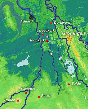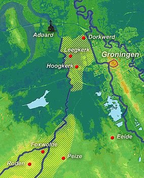 Het kaartje is een combinatie van de pleistocene hoogtekaart van Noord-Nederland en de topografische kaart 1:25.000.14