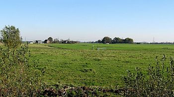 De Middagsterdijk (waarop de Medenerweg) verheft zich ruim 1 meter boven het aangrenzende land.