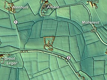 Wat in het veld slechts met moeite en goede wil zichtbaar is, krijgt een spectaculaire aanblik wanneer aan de hoogtegegevens een hellingschaduw wordt toegevoegd.