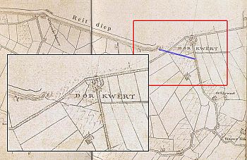 In het vorige deel liet ik een plaatje zien van een ‘Ommelander plaats’, waarop de nu verdwenen sloot tussen Dorkwerd en boerderij Kolde Ovent zichtbaar was.54 In de Hottinger-atlas uit 1773-1794 bevindt zich een kaart waarop nog veel mooier te zien is dat de bewuste sloot in het verlengde ligt van het Reitdiepvak Platvoetshuis-Wierum.