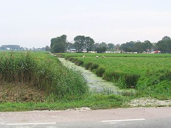 Links: de Oude Woldgraft ten zuiden van de Zijlvesterweg bij Dorkwerd