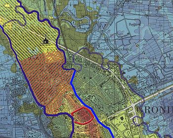 - de relatieve hoogte van het Eemskanaal (bruin van kleur)