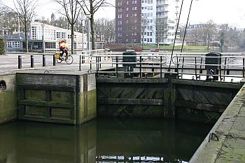- De wijdte van de deuren (een ruime 4,5 meter) wijst erop dat er niet alleen gerekend werd op de passage van water. Er moesten blijkbaar ook vaartuigen door.
