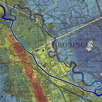 Het stukje van de omgelegde Hunze dat door de stedelingen moest worden onderhouden is op dit kaartje met een lichtblauwe kleur aangegeven.