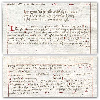 Het hiervoor al genoemde, uit 1489 daterende document, waarvan een afschrift hierbij is afgebeeld, zou licht kunnen werpen op de gang van zaken, ware het niet dat de interpretatie ervan verre van zeker is8.