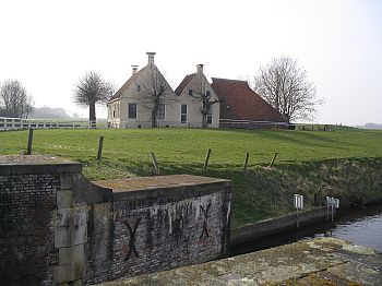 Ik druk me voorzichtig uit, want bij de Aduarderzijlen is door de eeuwen heen druk gegraven, gebouwd en gebroken. Hier bouwden de Saksische stadhouder Hugo van Leisnig en graaf Edzard van Oost-Friesland in 1501 een bolwerk met blokhuis dat ze ‘Stuur Groningen’ of ‘Weert Groningen’ noemden. Nadat de sterkte in 1515 door de Saksische bezetting was opgegeven, werden alle opstallen afgebroken, de aardwerken met de grond gelijk gemaakt en de 20 meter brede gracht gedempt14. Daarna, in het bijzonder in de jaren 1580-1594, is hier opnieuw een fort opgeworpen om het bezit waarvan door konings- en Staatsgezinden meermalen verbitterd gevochten is. Het zou dus een wonder mogen heten wanneer het waarhuis van nu op dezelfde plaats staat als dat van 1489. Maar omdat wonderen de wereld niet uit zijn en ik in het tegenovergestelde geval alle houvast voor mijn verdere beschouwing zou kwijtraken, doe ik in het vervolg alsof Sybrantshuis op dezelfde plek staat als het tegenwoordige waarhuis.