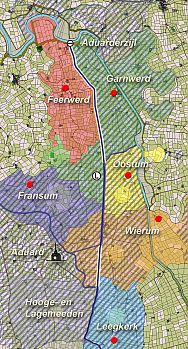 Op dit kaartje zijn de verschillende panden van het Aduarderdiep gemarkeerd. De nieuwe stukken zijn de verbinding tussen Nieuwklap en Aduardersteentil (het kanaalvak dat langs Gaaikema loopt!) en het gedeelte ten noorden van boerderij Langeveld.