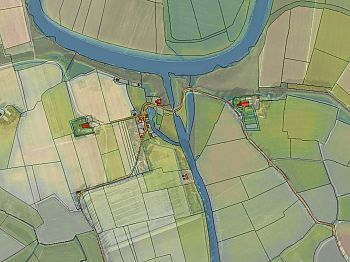 Hier zijn Google Earth, de AHN-kaart en de oude kadasterkaart van HISGIS met elkaar gecombineerd.