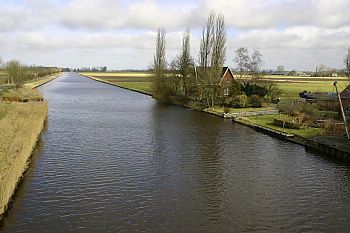 Het Aduarderdiep tussen Nieuwbrug in het zuiden en Aduarderzijl in het noorden.