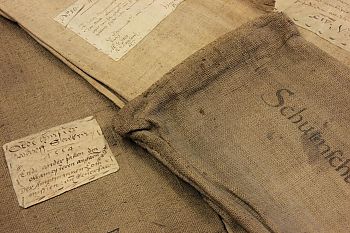 De gewone stukken hingen in zakken aan het plafond; hierin bevonden zich stukken over een zelfde onderwerp of zaak. Je kunt deze handelwijze zien als een voorloper van dossiervorming.