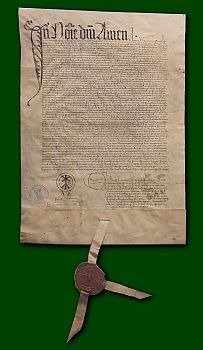 Vidimus door notaris Conradus Doleatoris van een Nederduitse vertaling van een in het Fries gestelde akte uit het jaar 453 (sic!) waarbij keizer Karel de Grote de Friezen enkele voorrechten verleent, 21 oktober 1456. Het stuk betreft het legendarische ‘Friezenprivilege’ uit 802.