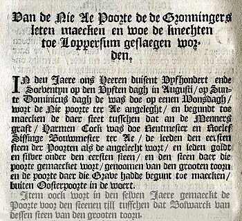 ‘Van de nie Ae Poorte de de Gronningers leten maecken en woe de knechten toe Loppersum geslaegen worden.