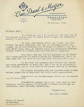Frederik Wilhelm Meijer en Willem van Daal openden in 1938 een zaak voor maatkleding aan de Herestaat 70 (naast hotel Frigge) te Groningen.