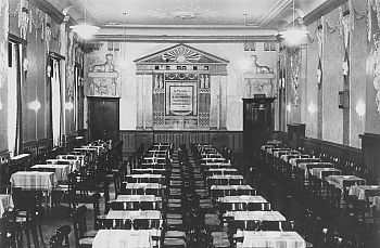 De inrichting van de begin negentiende eeuw gebouwde grote zaal lijkt, volgens bewaard gebleven foto’s, zelfs door vrijmetselaars bepaald.