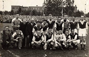 Als de hoofdtribune in 1933 afbrandt, ontwerpt voetballer-architect Evert van Linge het huidige exemplaar.