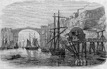 Nu gaan wij zien het kolenladen, hetwelk te Sunderland op zeer veele plaatsen de order van de dag is. Geheele treinen met kolenwagens worden met touwen en kettingen van de hoogte naar beneden gevoerd en met grote spoed ook aldaar in de schepen gebragt op eene buitengewonen behendigen manier.107 Als er zoo een trein van 25 waggons met kolen ankomt die zijn ras ingerukt, zoodat een kof of een zeer groter schip spoedig is afgeladen.