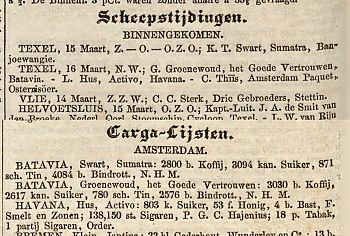 Bij de aankomst op 't Nieuwe Diep had ik het genoegen een menschenvriend de heer J. Arts, firma Arts en Van Velden van Doorn 31 aan te treffen, die dan ook de makelaar van de tarve was. Deze vriend heeft mij in de eerste plaats alhier gerecomandeerd tot inkopen van Engelsche souvereinen.32